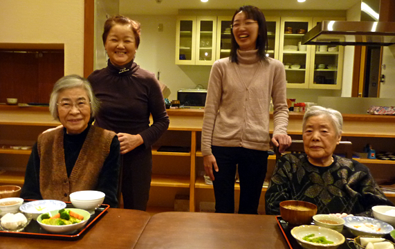数年の集団生活から一転、新しい生活に慣れるか心配しましたが、スタッフさんがお部屋にこもらないように物づくりに誘っていただいたり、何よりも家族的な接し方をしていただいて感謝しております。おかげで一時認知症?と思われた行動もなくなり、イキイキとしている表情を見ると私までが明るくなり、おばあちゃんに会いに行くのが楽しみになります。(お嫁さんより)